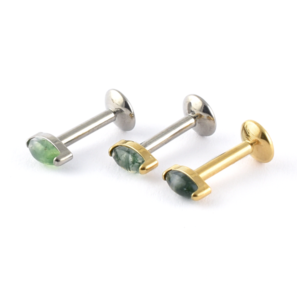 Choose: Plain Titanium bar and setting with Moss Agate stone.